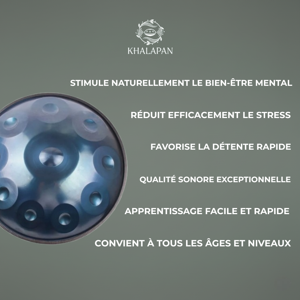 Nos handpans sont forgés et accordés à la main par des artisans passionnés. Chaque instrument est testé individuellement pour garantir une sonorité pure, harmonieuse et méditative.